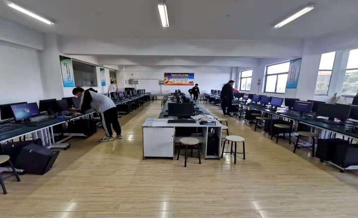 因机房使用期限较长,部分电脑有硬件或软件故障,影响正常教学。此次活动中在指导老师的安排下,首先对整个机房的电脑进行检查,排查出已经硬件损坏的电脑,整理出来统一存放,另外对还能使用的电脑进行整理和软件检查,修复后统一重新按机号摆放供教学使用。