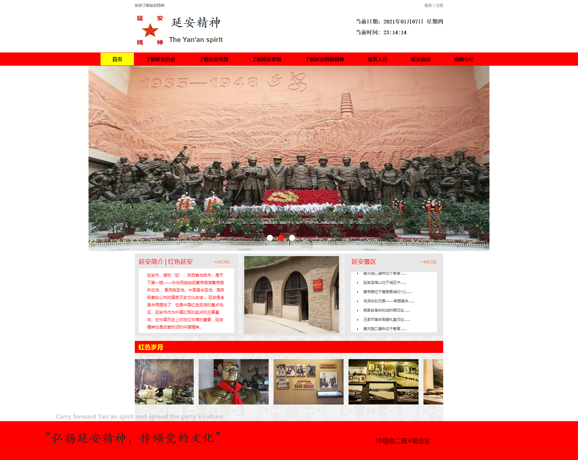 本次竞赛共收到39件网页作业,内容涉及具有代表性的井冈山精神、长征精神、延安精神、大庆精神、“两弹一星”精神、人民兵工精神、雷锋精神、改革开放精神等。经过评委评议, 19应用班孙宏奇等6名同学的作品分获一、二、三等奖。具体获奖名单如下:
