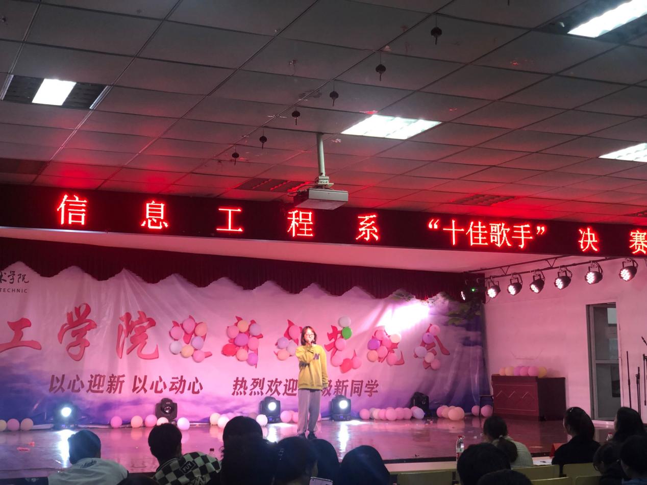 为了繁荣校园文化生活,努力营造积极向上、健康文明的校园文化气氛,为学生提供展示自己才华的舞台,由信息工程系举办的“校园十佳歌手”决赛于11月7日下午2点30分在图文六楼大学生活动中心隆重举行,并邀请到了朱小凤、朱晴、方芳三位老师来担任本次比赛的评委老师。