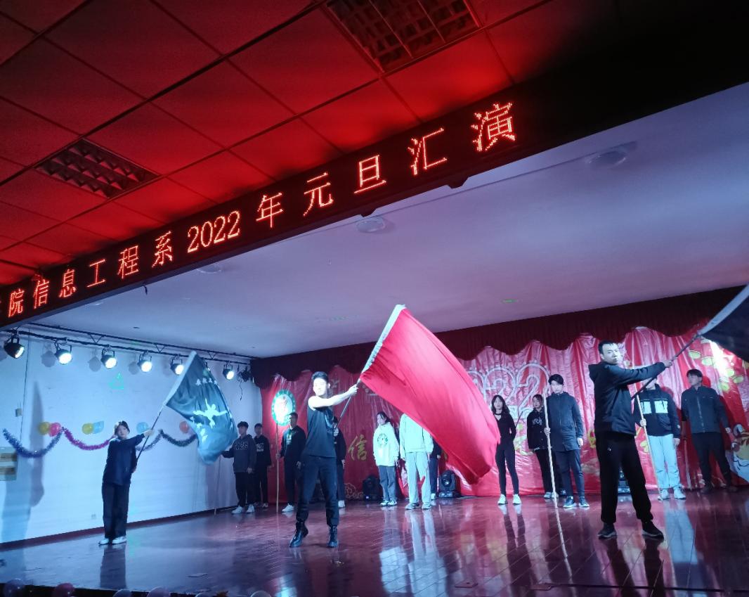 2021年12月23日晚,信息工程系主办的2022年元旦文艺联欢晚会在图文六楼大学生活动中心隆重举行,以此恭祝元旦的到来。系部领导巨峰书记、戴吉老师、朱小凤老师、方芳老师也亲临现场参与活动,并与同学们共享这欢乐时光。当然还有学生会的工作人员以及台下300余名学生早已入座等待活动的开始。