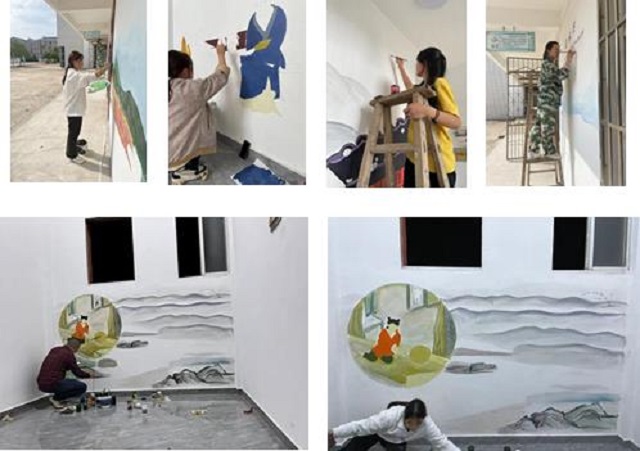 2022年10月25日至11月7日,beat365信息工程系艺术设计工作室专业社团的4名成员在社团指导老师陈树贤老师的带领下,前往铜陵市枞阳县金社中心学校、少年宫进行文化墙彩绘,12名成员校内刻字,项目历时10天完美收工。