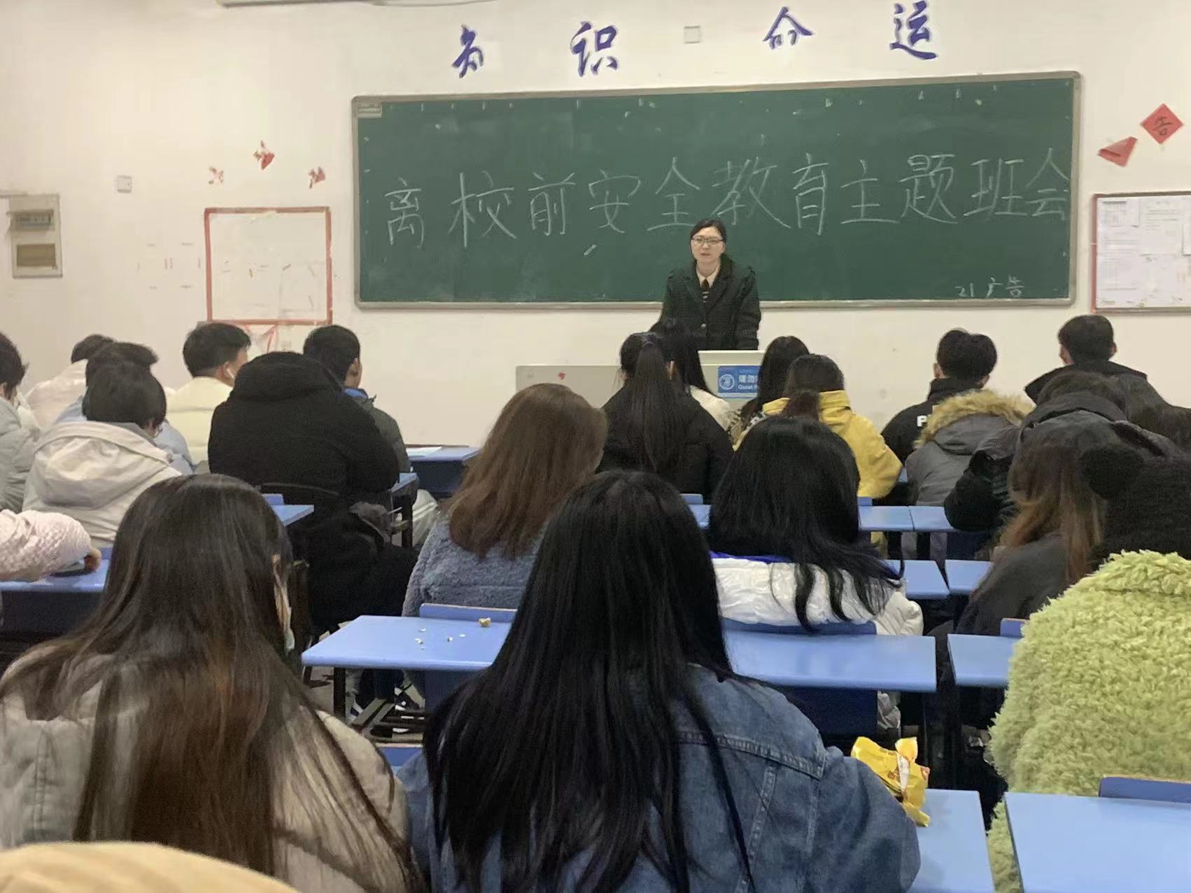各班在各教室召开“寒期”离校前安全教育主题活动。各年级辅导员围绕防火、防盗、防治传染病、宿舍安全、防范网络电信诈骗、交通安全、饮食安全、网络安全、金融安全等事宜进行了宣讲。辅导员要求同学们继续严格执行常态化疫情防控要求,保持疫情防控风险意识不放松、不懈怠,做好个人防护,对因兼职、探亲、就医等原因确需离家外出的,要提前向辅导员老师做好去向报备。在寒假放假期间要注意出行安全,保持手机24小时畅道,每天在中午12点前完成打卡,发定位给辅导员。尤其针对近期来发生的各类诈骗,各年级辅导员再次进行进行诈骗案例讲解,提醒同学们一定要加强安全防范意识,时刻绷紧防范之弦。老师们通过剖析几例诈骗案例提醒大家注意各种诈骗形式,发送转账截图的均为诈骗,对于熟人、领导要求转账的,直接电话联系确认,冒充电商容服陌生微信群发布的任务都是诈骗,网络赌博也是违法行为。