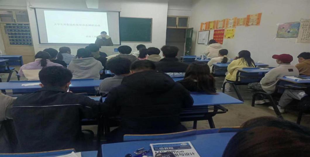 新学期,为了及时准确的掌握同学们在寒假返校后的思想动态,了解同学们普遍关注和关心的热点问题,增强学生思想政治工作的针对性和实效性,2月21日下午4点30分,信息工程系组织学生在图文信息楼5楼506教室开展了思想动态调研会,会议由团总支朱老师主持,参加会议成员由21级、22级学生代表组成。本次活动主要是采取了线下座谈会的方式开展了大学生返校思想动态调研活动。