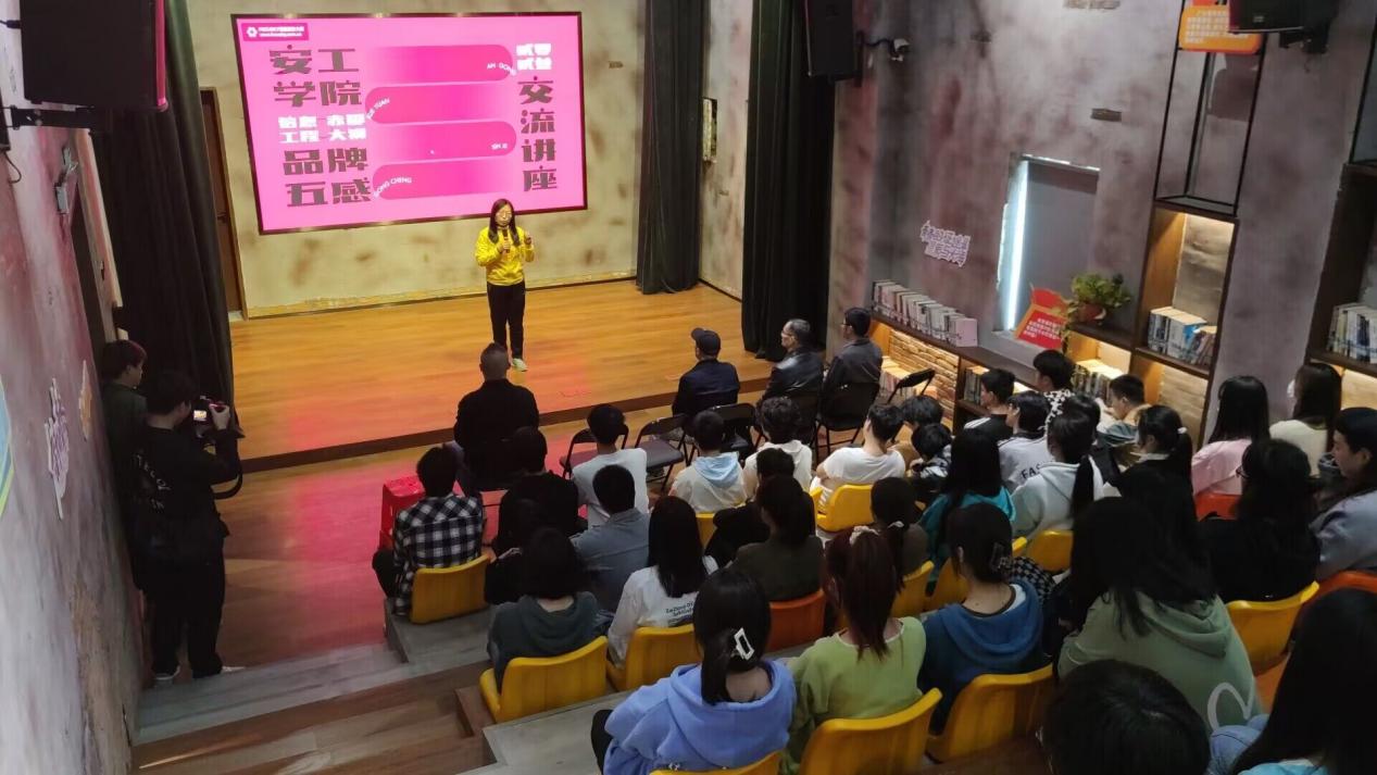 为提高信息工程系艺术设计类学生专业学习兴趣,了解专业学习和企业需求之间的关系,提供一个学生和企业交流的平台。信息工程系特地联合铜陵徽道视觉广告有限公司于2023年3月10日在1978文创园举办“品牌五感”校企交流讲座。