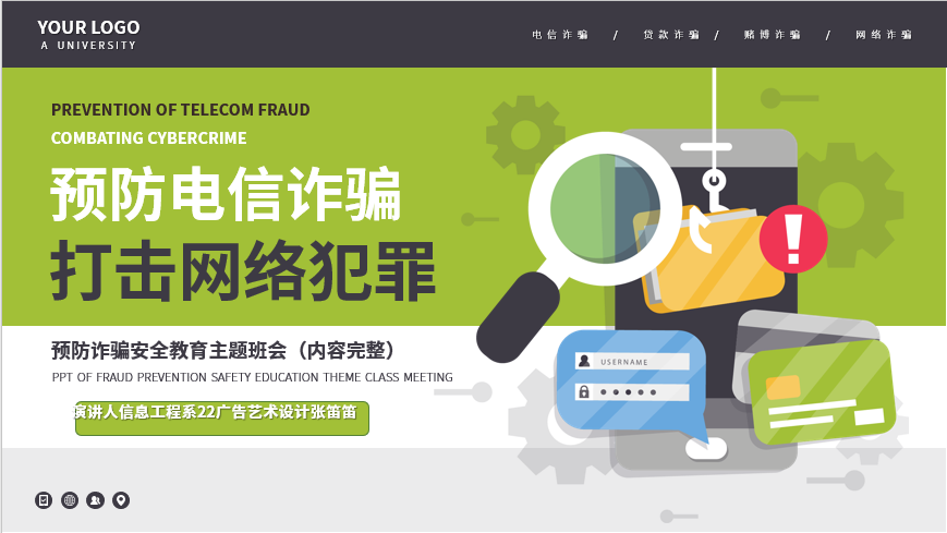 2023年3月29日,信息工程系威客社团举办了“防诈骗PPT制作”活动。本次活动由威客社团负责人组织开展,采用线上收集作品的方式进行的,社团成员共有57名同学参加比赛,共收集作品57件。经过评委们的认真评审,共评出一等奖2件,二等奖3件,三等奖4件。