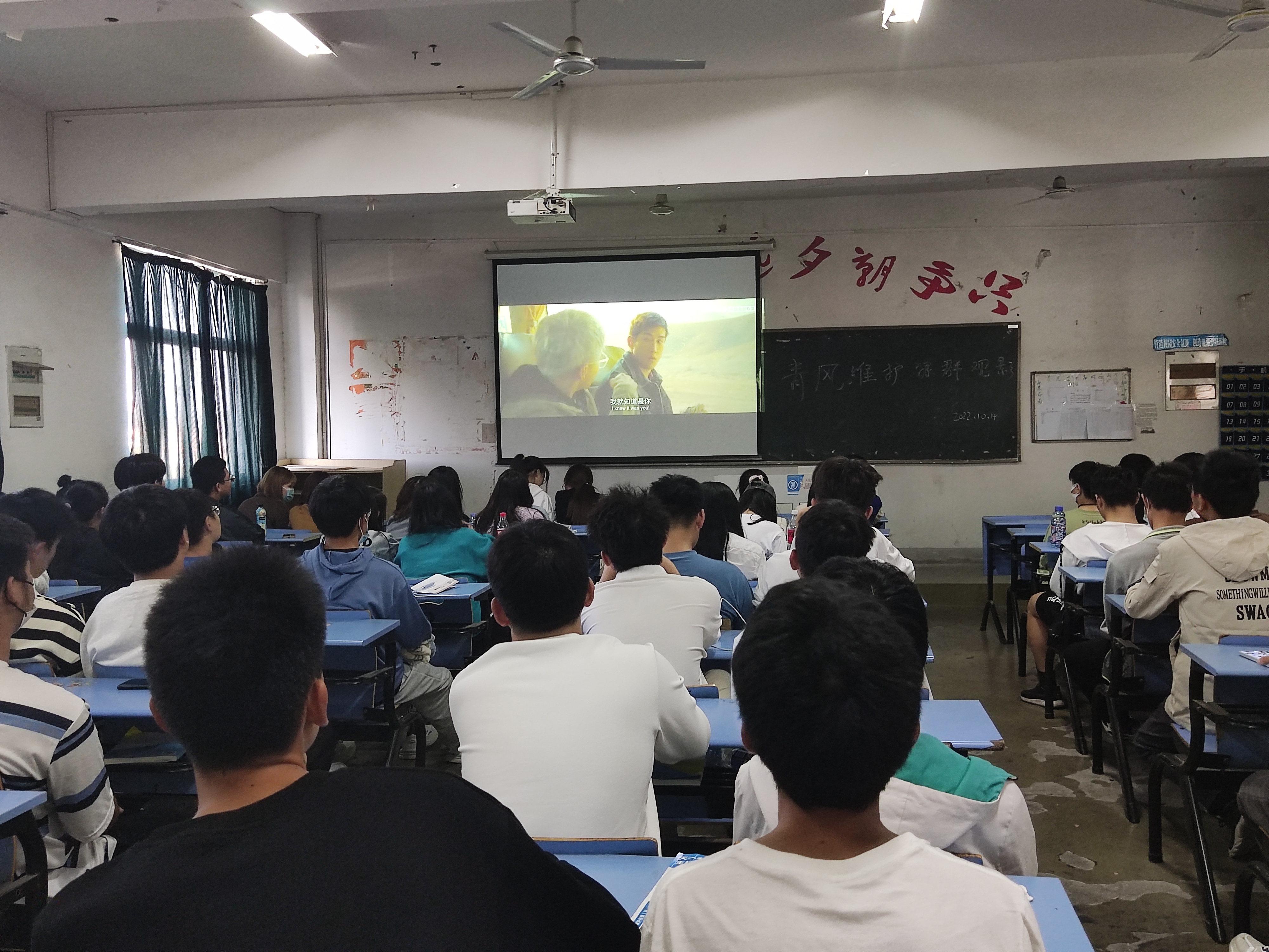 2022年10月14日,在图文楼505举办了安工学院青风维护社团22秋《狼群》观影活动,活动由王老师指导并监督。此次活动共有100名同学参加。