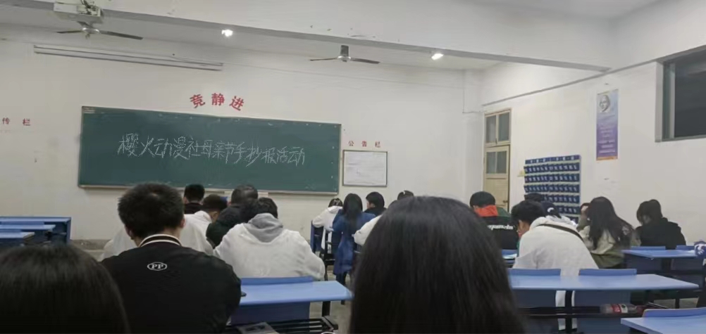 活动当天,在同学们都到达教室时我们开展了活动,他们都交了很好的作品,活动负责人也很认真的收了作品,通过此次活动让他们感受到母亲的爱,同时也让他们学会如何向母亲表达自己的爱。