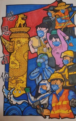 本次活动作品主题自本周的节日—感恩节,运用自己所学的知识,并且把自己想要感恩的人想象出来绘制成一副作品,同学们利用本次活动回想起曾经帮助过自己的人,让感恩与绘画融为一体,不仅增强了同学们的审美能力,绘画能力还使同学们做一个吃水不忘挖井人的优秀品质的学生。