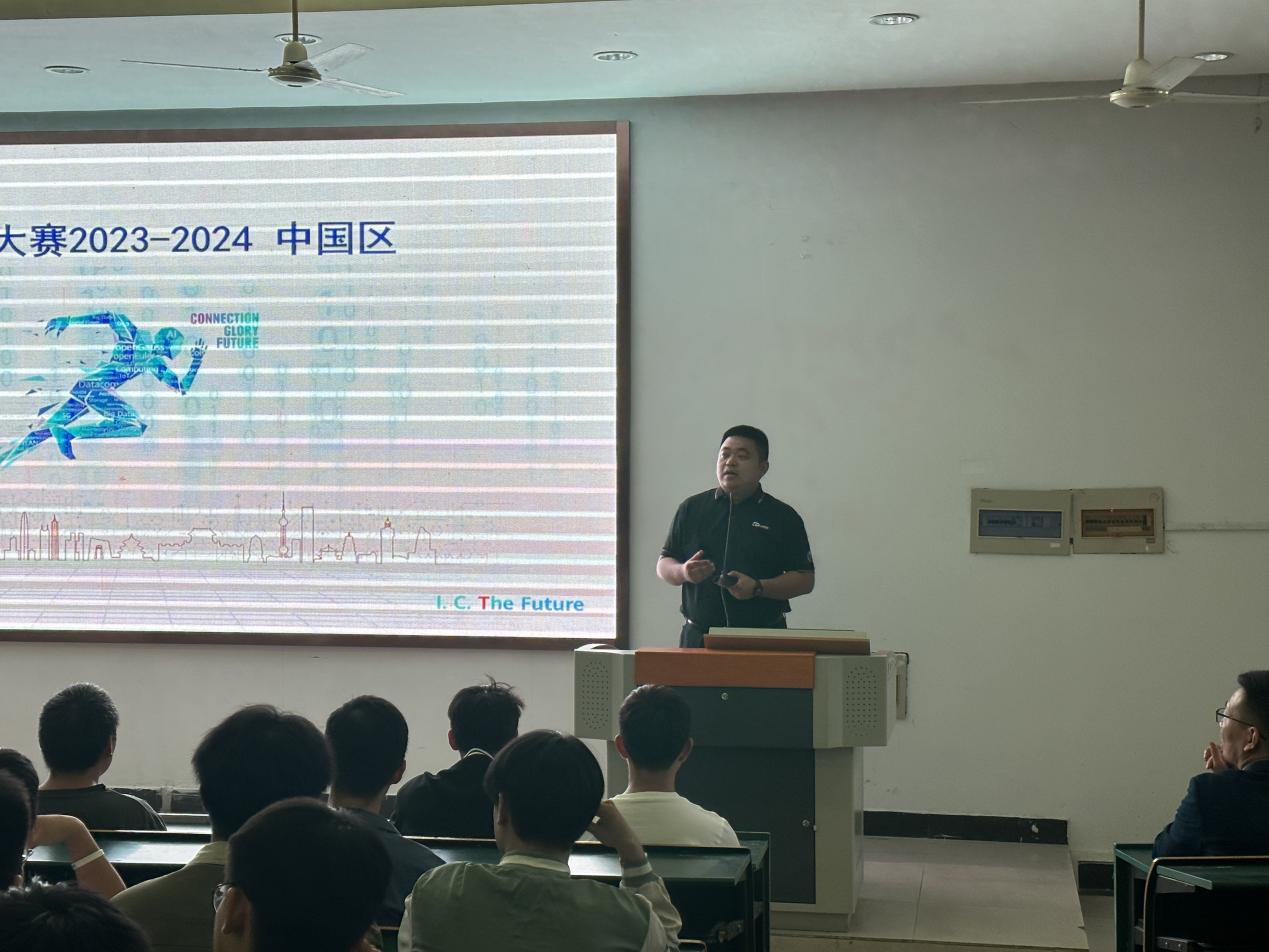 2023年10月9日,信息工程系联合赛博网络社团在教学楼阶梯101教室成功举办了华为ICT大赛宣讲会,面向22级计算机应用技术、计算机网络技术、大数据技术和软件技术四个专业。该宣讲会邀请安徽慧桥教育咨询有限公司李志成主讲,围绕华为ICT大赛的最新动态和发展趋势,详细介绍了实践赛中网络、云、计算三个赛道的大赛内容,鼓励积极参赛、科学安排备赛时间进度。