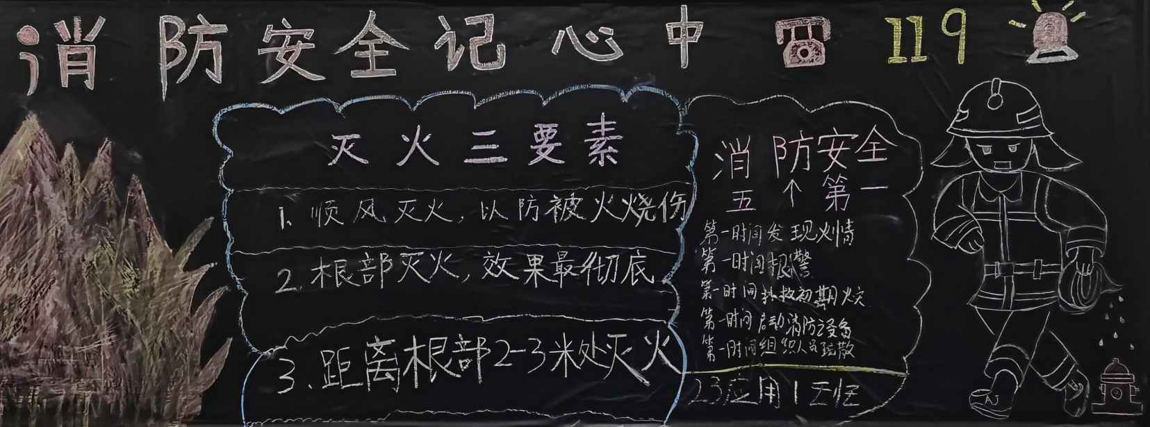 除此以外,为广泛宣传抓氛围营造,我系各班还通过相关视频学习、黑板报宣传等方式,开展了全方位,多渠道的宣传,营造共同关注消防安全的良好氛围。