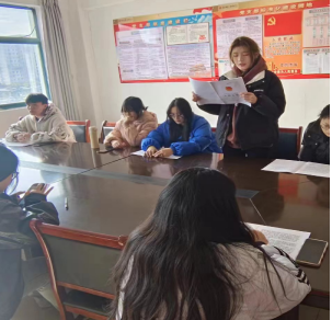 本次活动由党总支巨峰书记主持。会议内容主要有全体起立,共同献唱《光荣啊!中国共青团》团歌。接着,巨书记宣读了9名新团员名单,组织新团员宣读了入团志愿书,然后请团支部代表为9名新团员戴上团徽,大家共同向团旗庄严宣誓。同学们用誓词表达了对共青团组织的无限向往和为团组织增光添彩的豪迈激情。在鲜红的团旗背景下,此刻的宣誓将激励团员们在今后的学习、工作以及生活中不断向前迈进。