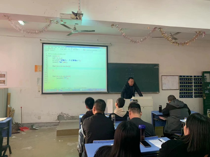 吴继兵老师所授的课程是《C语言程序设计》。他聚焦于for循环的嵌套使用这一知识点,通过深入浅出的讲解、精美的PPT演示、生动的案例分析以及实操的代码演示,为全系教师呈现了一场精彩绝伦的教学示范。