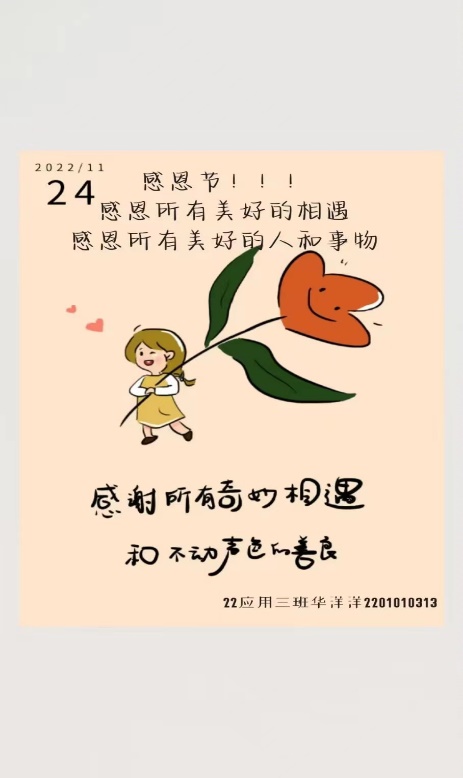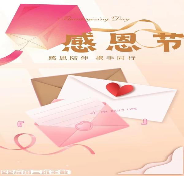 此次活动中,同学们运用自己所学的知识、积极去收集“感恩节”的相关内容、材料背景、图片等,用相关的专业技能相结合。此次活动让同学们更好的了解感恩节的历史及深后的起源。通过此次活动意在丰富同学们的课余生活,不仅加深了同学们对感恩节的认识,还让同学们制作海报的技术得到锻炼。