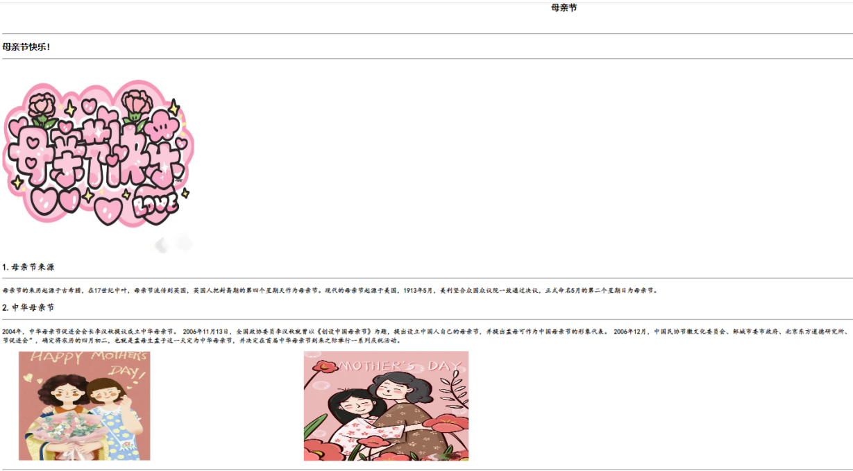 此次活动中,同学们将自己对母亲节的情感用专业知识转换为简洁而美观的网页制作。更加考验同学们灵活运用专业知识的能力,并且让同学们知道父母对自己的养育之恩,理解父母对自己的关爱,对父母产生感恩之情。
