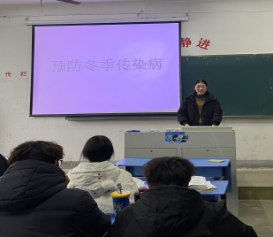 班会上,各班辅导员围绕冬春季常见传染病及预防措施展开了教育。用真实案例,结合各种冬季传染病流行特点,用通俗易懂的语言、图文并茂的展板和课堂互动的方式,从传染源、传播途径、易感人群三个方面普及传染病预防知识,倡导学生养成出入公共场所佩戴口罩、勤洗手保持手卫生、社交场所保持“一米线”、注意咳嗽礼仪等文明健康的生活方式和卫生习惯;重点对常见的病毒、水痘、流感、流行性腮腺炎、手足口、肺结核等传染病的症状、感染途径、感染原因、流行原因、流行特点和防控中常见问题、具体防控措施进行全面讲述,特别针对胃肠道传染病呕吐物处置进行强调。各班辅导员建议学生不宜到人群聚集、空气流通差的公共场所,要求教室经常开窗通风,注意保持学校和家庭环境卫生;提倡合理营养和科学运动、及时接种疫苗,建立相应的免疫屏障,提高自身免疫力和抵抗力;指导学生班干做好晨午检、因病缺课登记工作,高度关注聚集性急性发热病例,预防和控制传染病的暴发流行。同时,各班还提醒学生勤晒衣被勤洗澡、积极参加体育锻炼,注意饮食安全、讲究个人与公共卫生、提高自身的免疫力,达到家校共建共育的效果。
