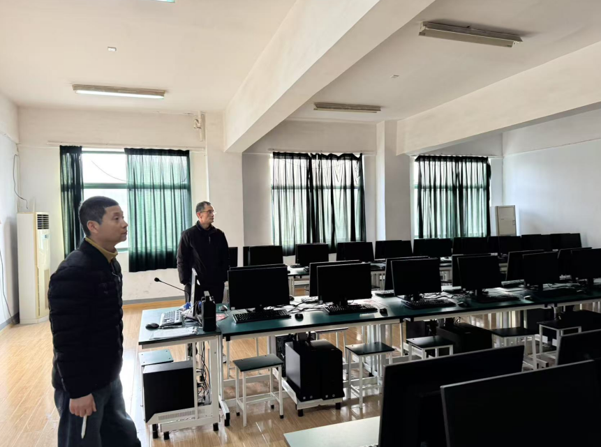 按照学院期末教学检查的部署,根据学院实训与数据资源管理中心下发的《关于做好2024秋季学期期末实验室安全卫生检查暨寒假期间实验室安全工作的通知》的通知要求,为确保学生实训环境的安全与卫生,进一步提高学生的实践能力和实验技能,信息工程系于近日全面启动了本学期的期期末实训室安全、卫生检查工作。于2025年1月7日上午对图文信息楼与教学楼所有实训机房、画室等实验实训场所进行了检查。
