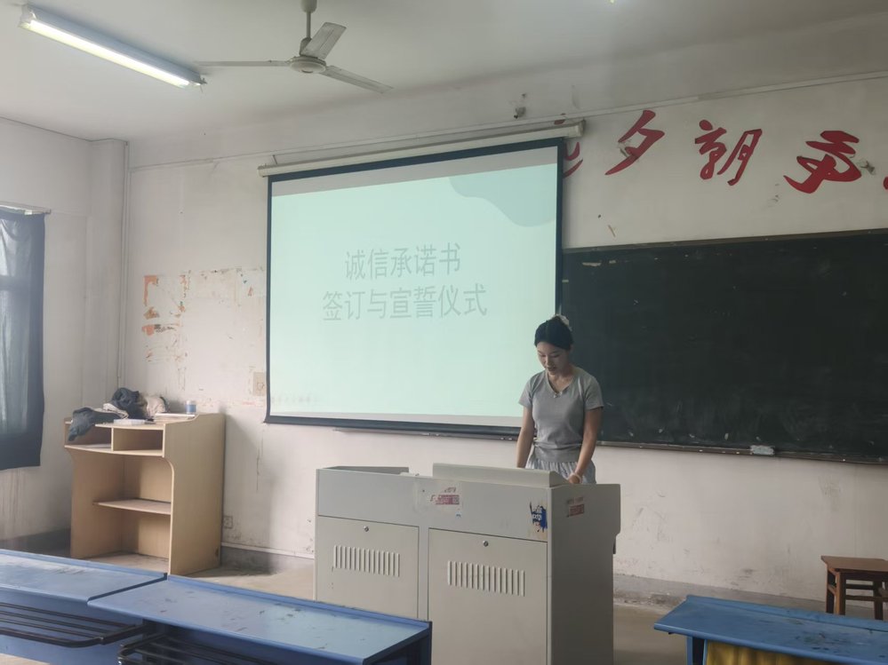 在领誓人带领下,全体学生右手握拳,庄严宣誓。铿锵有力的誓言回荡在会场,彰显了同学们践行诚信的决心。宣誓结束后,与会师生依次在诚信承诺书上签名,一笔一画间许下对诚信的郑重承诺。