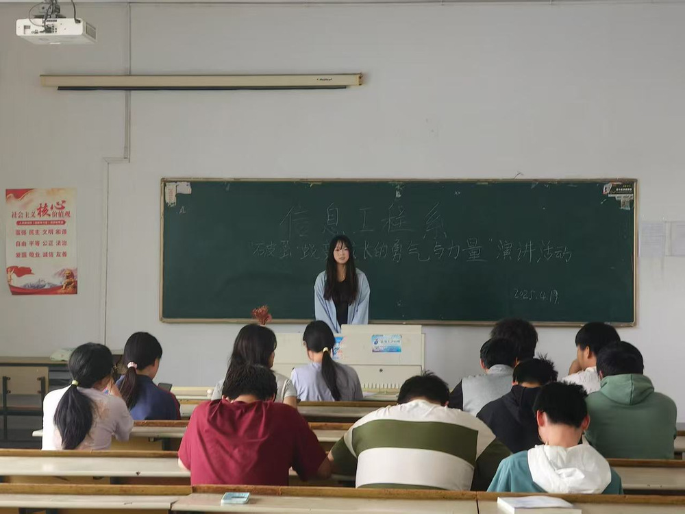 随后,演讲比赛正式拉开帷幕。来自24软件班的王同学以《从内向到自信,我在舞台上破茧》为题,分享了自己如何从一个不敢在众人面前说话的“社恐”,通过参加各类社团活动,逐步战胜内心恐惧,最终在舞台上自信演讲的蜕变历程;24动漫班的郑同学则讲述了自己在科研道路上遭遇多次失败后,不气馁、不放弃,在导师和团队的帮助下,最终取得突破性成果的故事;24网络班的宋同学结合自身的艺术学习经历,深情讲述了自己在追求艺术梦想的道路上,如何突破瓶颈,实现艺术风格的蜕变。