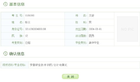 3. 退出后重新登录gkbm.ahzsks.cn,可以查询到自己确认的院校:
