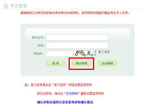1. 使用IE浏览器登录gkbm.ahzsks.cn。如果是第一次登录系统,请点击“首次登录”按钮,跳转至设置登录密码页面。