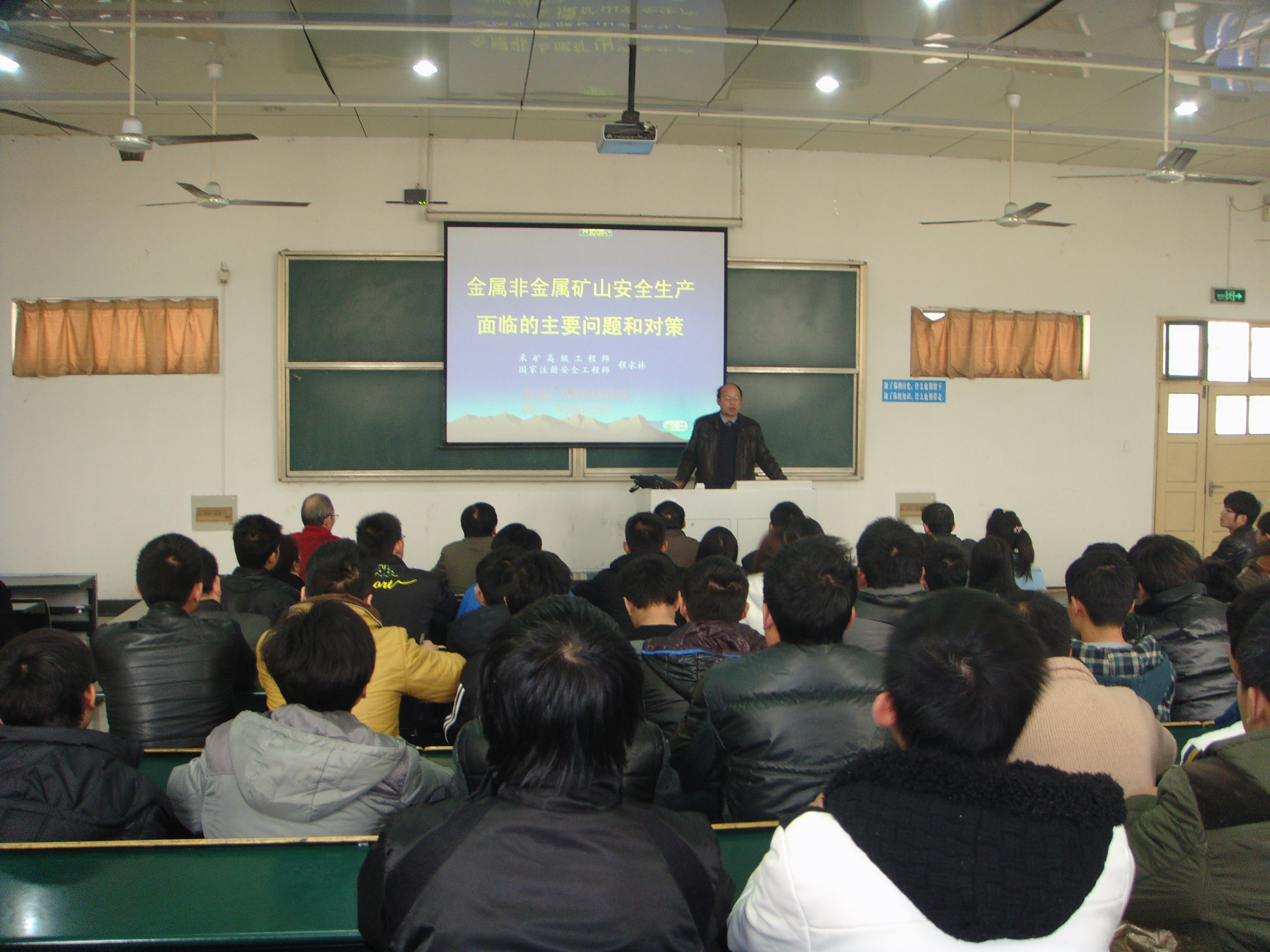为加强学风建设,开阔同学们的专业视野,12月6日下午,beat365资源开发系邀请了冬瓜山铜矿安全高级工程师程求林来我校为采矿、选矿专业学生做矿山安全技术讲座。