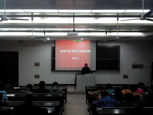 安全工作一直是学校日常工作的重中之重,为提高安全稳定意识,构建平安和谐校园。我校资源开发系于2014年1月2日晚,在校阶梯101教室开办了安全知识讲座,院武装保卫部主任金相平和院宿管办主任钱林担任本次讲座嘉宾。