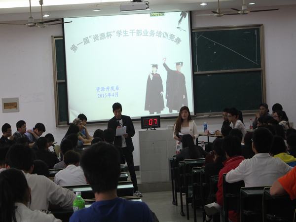 2015年12月24日下午,由我校资源开发系主办的资源系第一届“资源杯”学生干部培训竞赛活动在教学楼阶梯教室101来开帷幕。此次活动的目的是为进一步提升我系学生干部的综合素质和班级工作的整体水平,促进班级精神文明建设,提高学生干部的能力,展现班级的风采。院团委书记何慧凝老师、系党支部书记钱曙东老师以及各班辅导员参加了此次活动并担任评委。