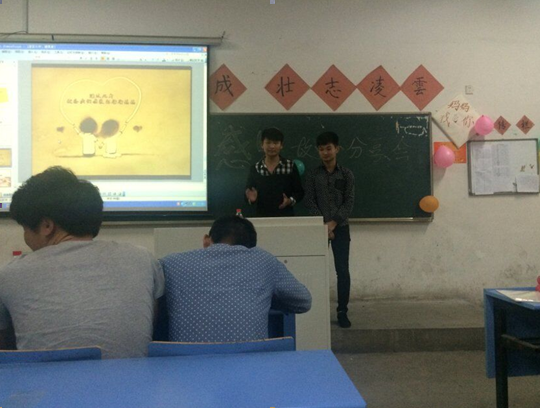 资开系学习部在2015年4月27晚宣传了一个主题为“爱在心中,感恩更美”的征文活动,并于5月10日母亲节中午在校联通店门口举办了电话互动。同时当天晚上在301教室也举办了一个“感恩故事分享会”活动,并邀请了在征文评比中荣获一等奖的14测量班张成舟,二等奖造价一班的虞雪、造价二班的秦楠,三等奖化工班的付明月、测量班的吴潇飞、造价一班的张志成,及四名优秀奖同学一起参加活动。活动以视频开场以PPT讲演进入主题。中场互动由老师、观众、部长、选手一同参加,增加了活动的气氛同时也赢得了热烈的掌声。活动现场各种真实的故事、当场通过手机和父母的对话非常让人感动。