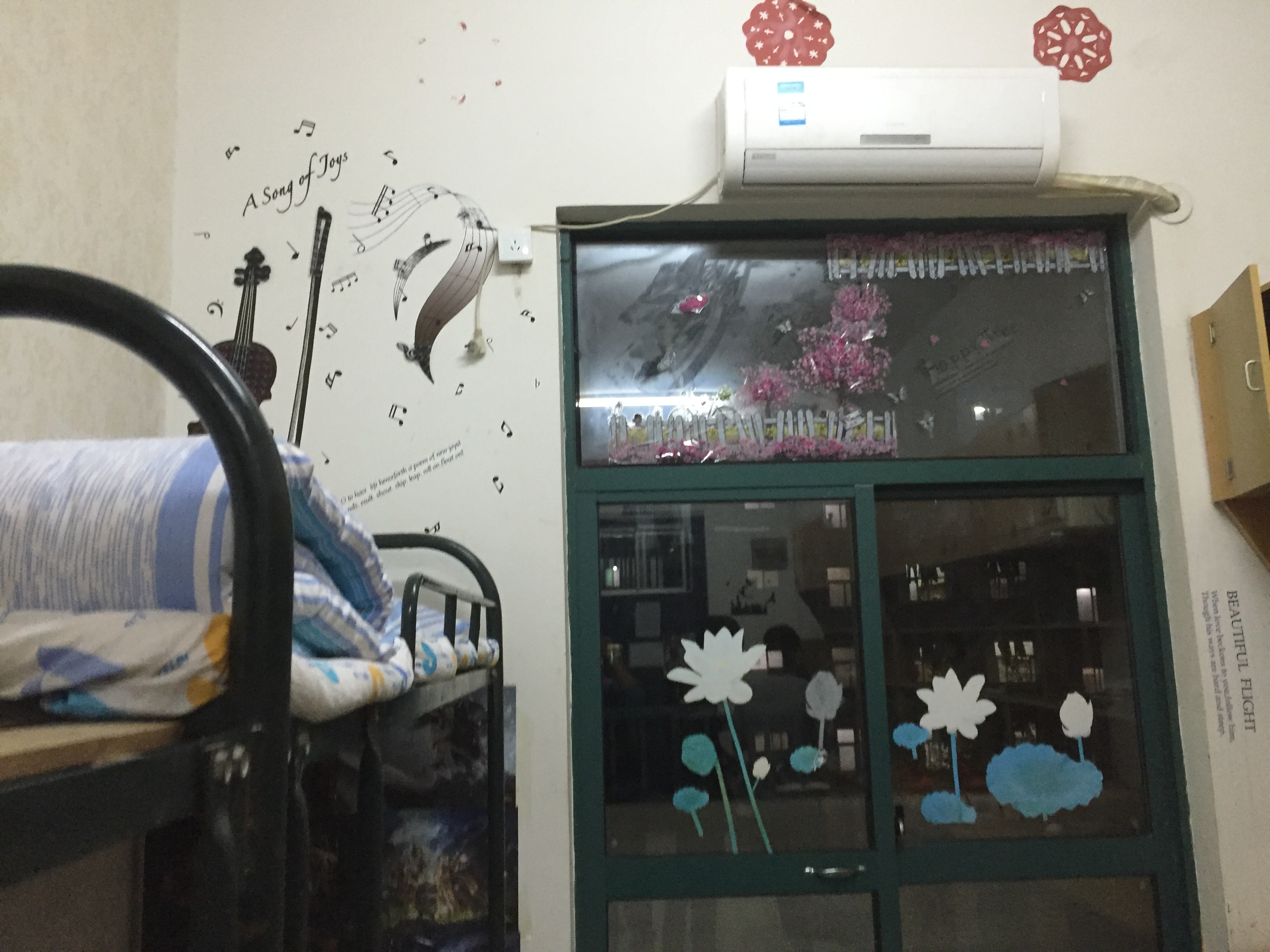 寝室的装扮多姿多彩,最让人暖心的便是女生寝室一屋子的爱心和纸鹤。合理的废物利用更是凸显了绿色生活的主旨。