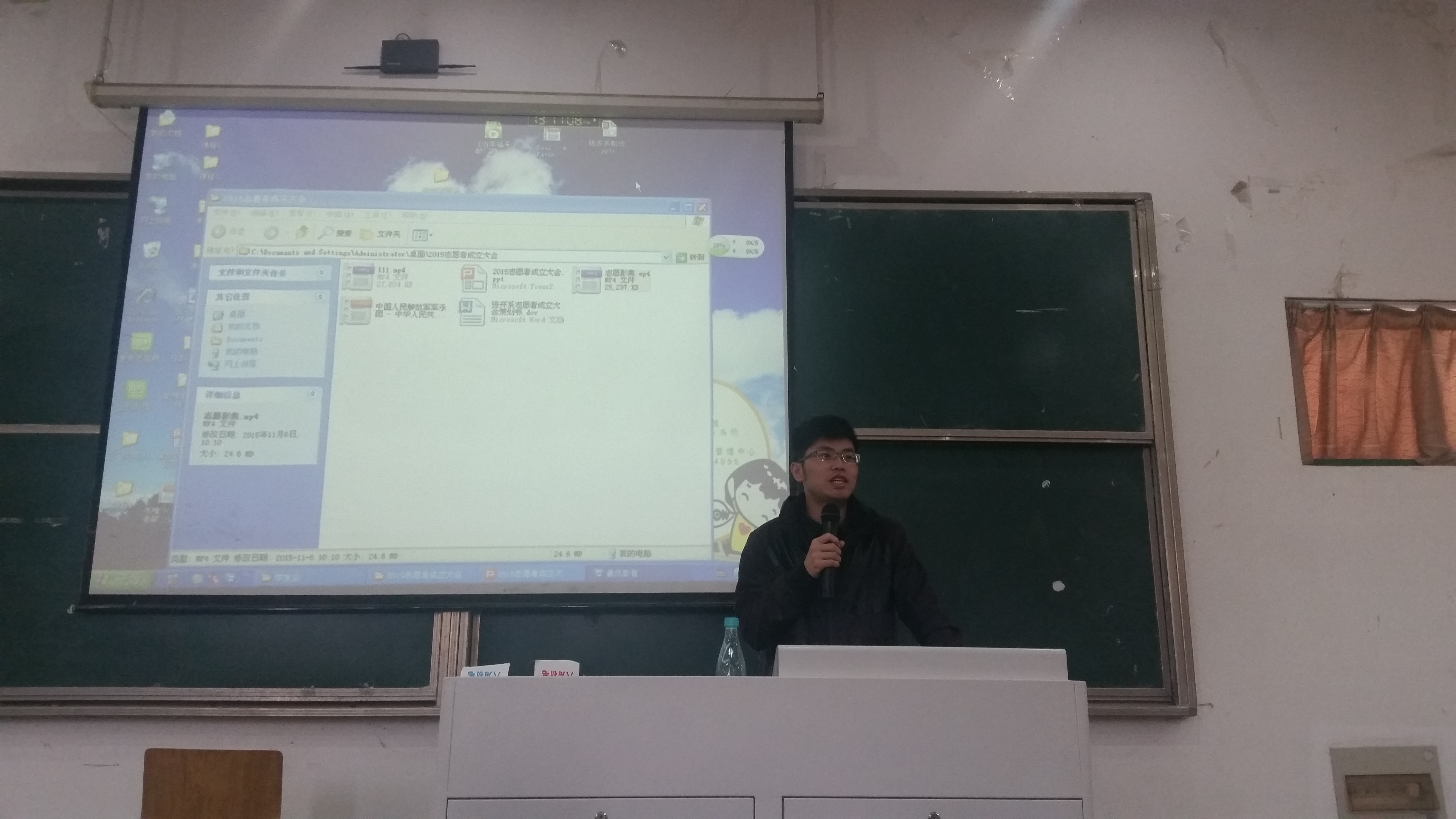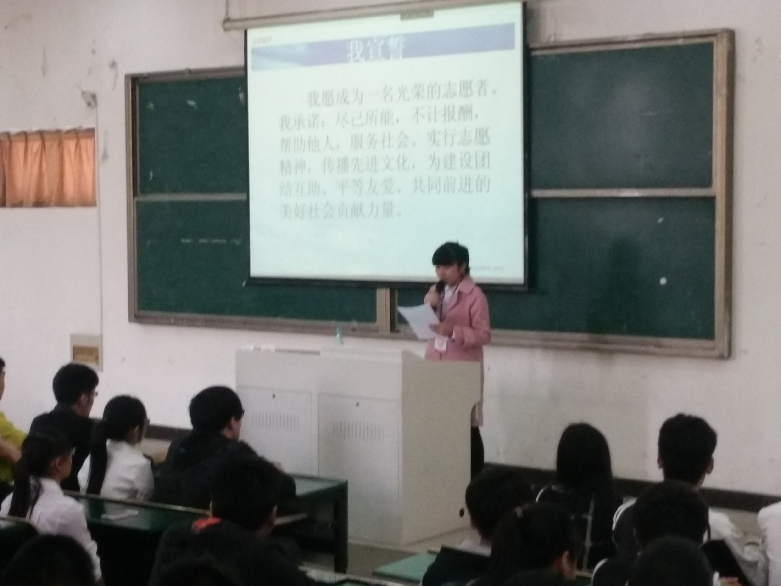 大会第三部分:系学生会高主席上台发言。表达了自己对15级新加入青年志愿者的新鲜血液的由衷祝贺并表示热烈欢迎;最后,由系团总支彭老师对本次大会发表了自己的看法和对本届青年志愿者由衷的祝贺,希望他们能够激发自身当代大学生的社会责任感,把志愿者的服务精神发扬并传承下去。