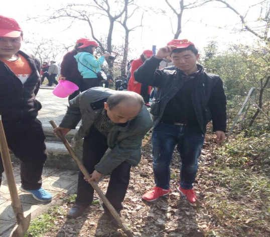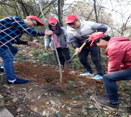 早上七点多钟,我们近三十名同学乘车到达指定地点——笔架山,分成3-5人一组,大家干劲十足,挥舞铁锹,挖坑,扶树、培土、浇水。经过两个小时的战斗,几十棵小树苗一排排的直立在我们面前。
