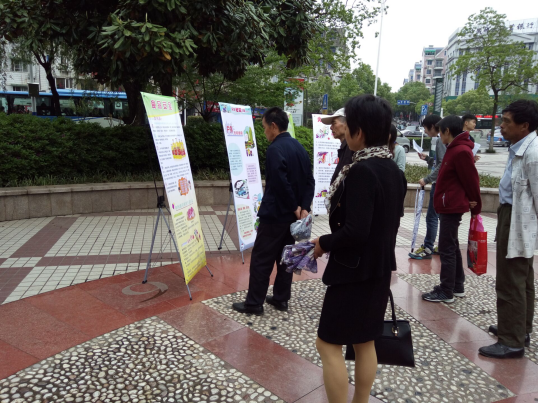 本次宣传主题是与社区居民息息相关的 “地震自救”、“食品安全”、“火灾防范” 、“除四害”等安全问题,宣传形式主要是展板、宣传单,并配以讲解。现场吸引众多社区居民驻足观看,他们十分认真,不时提出一些问题,同学们一一给予解答。也有一些奶奶阿姨们提出自己对社区、家庭安全隐患的看法和解决问题的办法,现场气氛十分活跃。