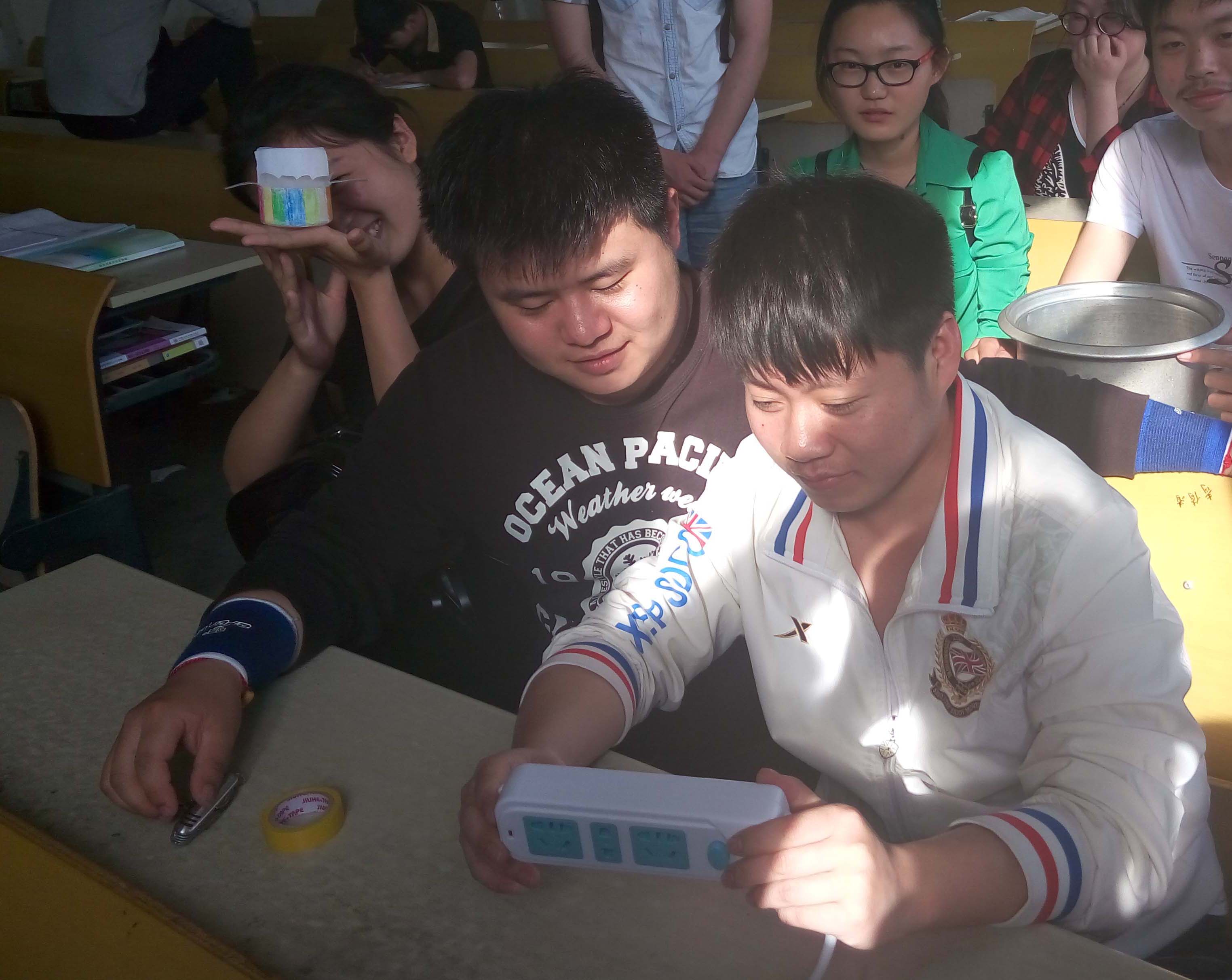 2016年5月12日下午,建筑和冶金专业的“金点子”立项项目学生分别在教学楼305、111教室,开展现场制作活动。这些制作项目均是学生自已构思设计,自己动手制作,旨在培养同学们的团队精神,激发大家的创意灵感。活跃课外文化生活。在整个制作的过程中遇到问题成员们热烈讨论,献计献策,共同解决每一个困难,为项目的成功付出自己的努力!。