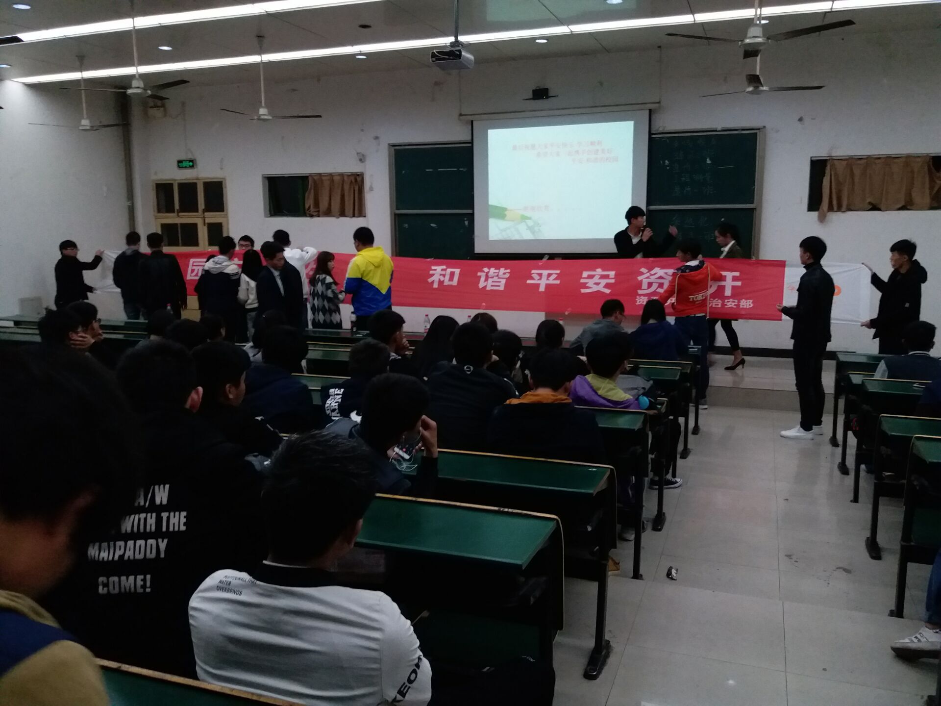 2016年11月11日晚六点,资源开发系于阶梯教室102举行校园安全教育活动。