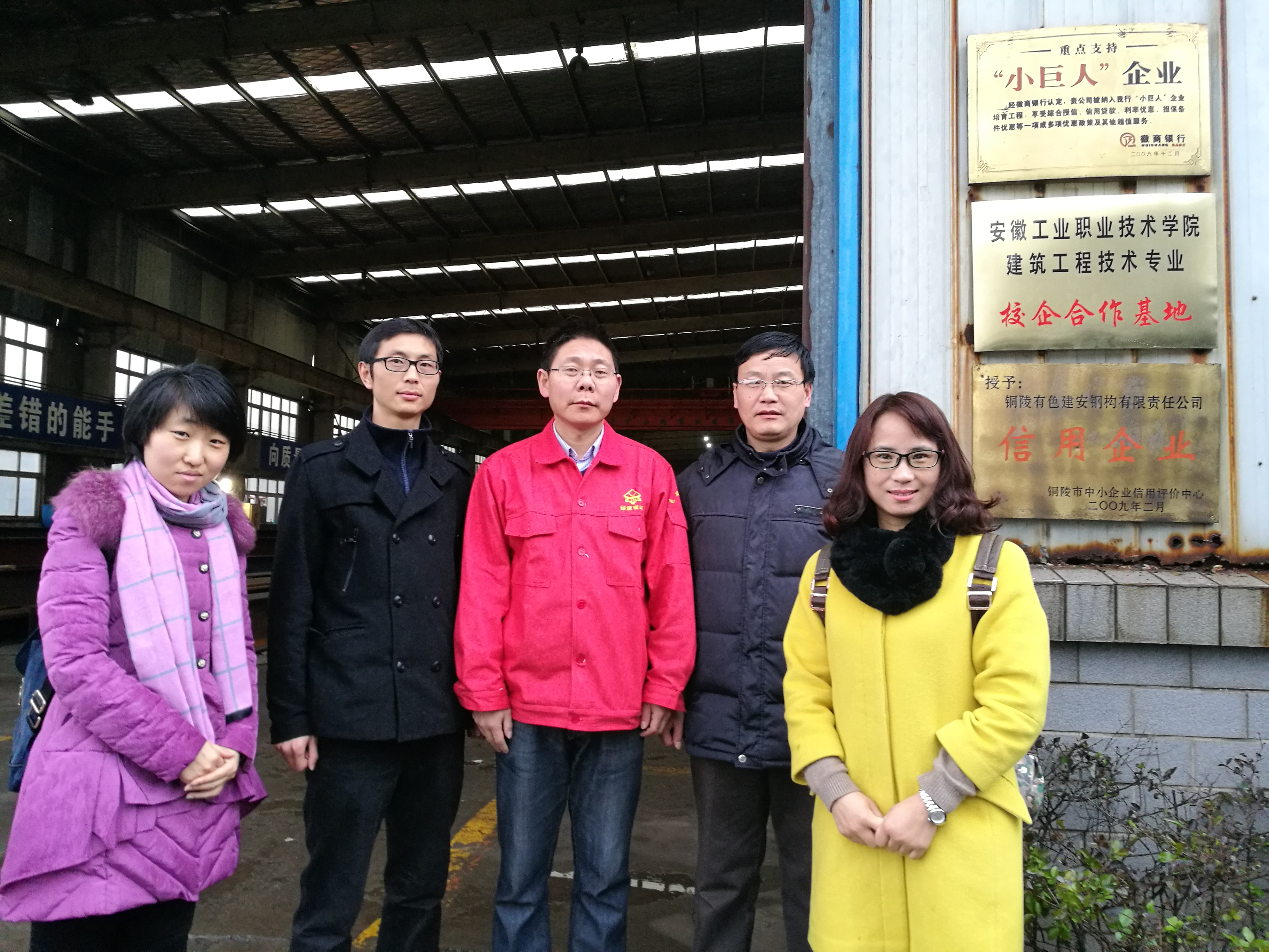 为了更好地培养beat365学生的实践能力、创新能力,推进校企间的“产、学、研”合作,2016年12月21日下午,beat365资源开发系杨书怀主任一行赴安徽铜陵有色建安钢构有限责任公司举行共建教学实习基地签约暨挂牌仪式。资源开发系杨书怀主任和有色建安钢构有限责任公司人力资源部的姚部长代表校企双方在协议书签字。出席本次仪式的还有建工教研室何世斌主任,建筑专业带头人张妤老师和造价专业带头人姜丽老师等。签约仪式上,姚部长对铜陵有色建安钢构有限责任公司的基本情况和业务发展方向做了详细介绍。双方都表示非常期待合作,希望以合作协议的签订为契机,进一步推动双方良性互动、资源共享,实现共同发展。