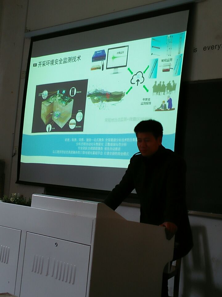 为进一步拓宽学生的专业视野,引导和激发学生的学习兴趣2016年12月28日下午,资源开发系特邀铜陵有色冬瓜山铜矿技术主管、高级工程师汪令辉给beat36515、16级采选专业的学生作了数字矿山技术推动矿山企业降本增效专题讲座。