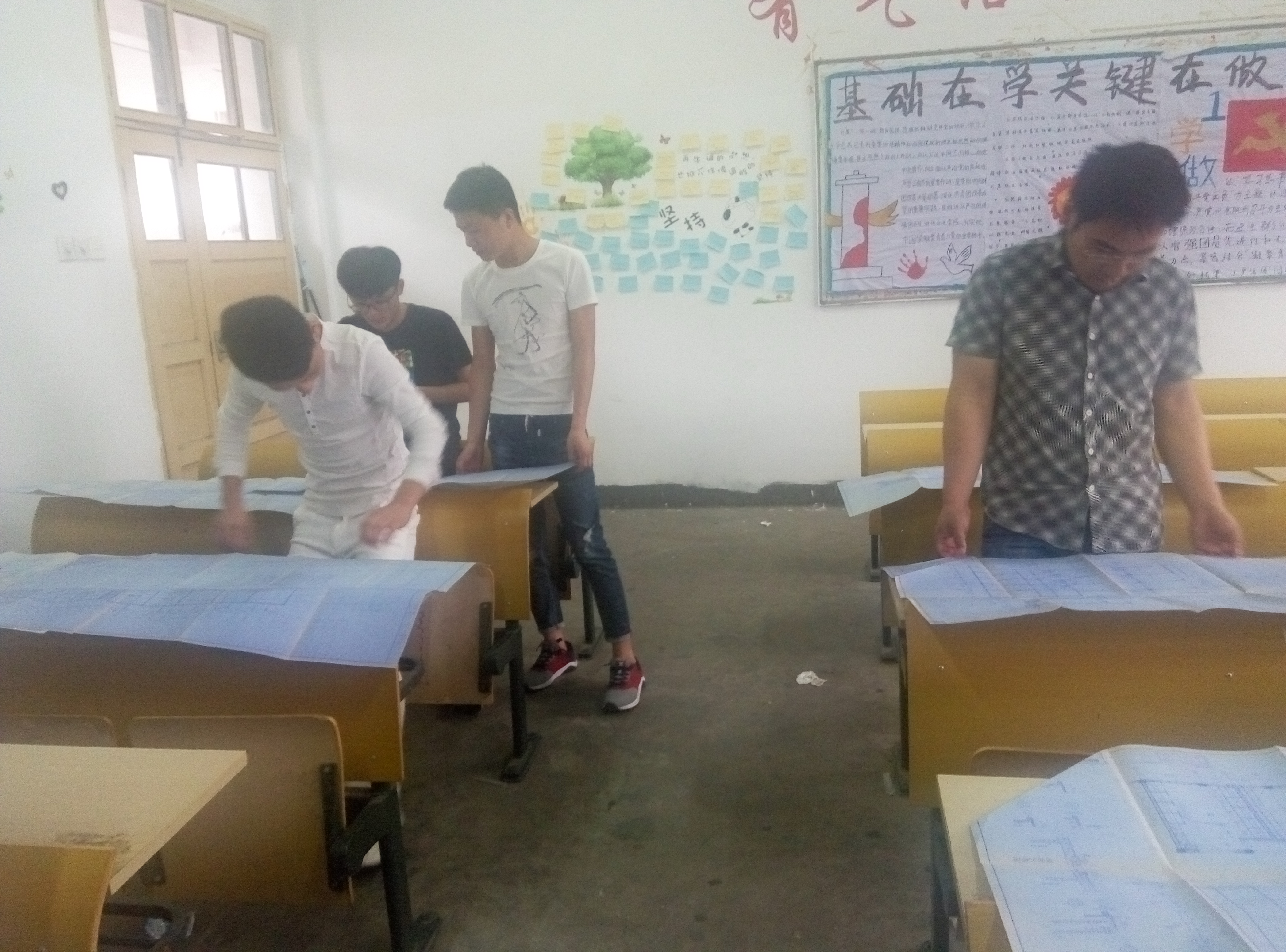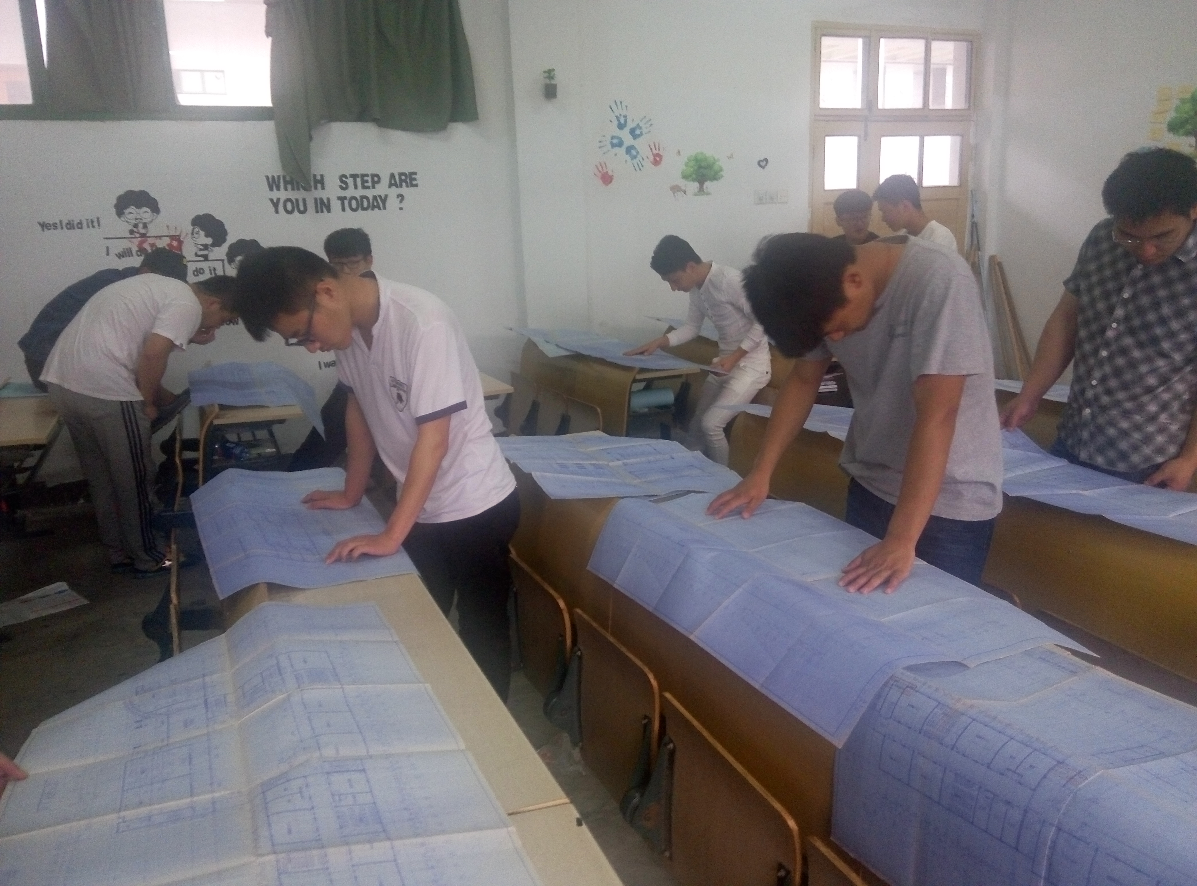 5月11日下午四点钟,建筑专业教学楼三维建模活动启动,16建筑1班和2班的十名同学齐聚304教室,在指导老师的带领下,对学院教学楼的建筑平面图、立面图、剖面图和建筑构造详图进行研究、讨论,将图纸和教学楼真实情况进行比较分析,为下一步开展三维建模做积极的准备,争取在6月底前完成Revit architecture软件对教学楼工程的三维仿真建模。