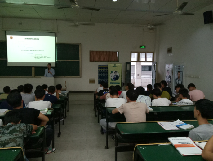 级学生齐聚一堂,聆听铜陵启尚建工教育咨询公司的朱总针对建筑专业人才未来发展及专业深造的讲座。