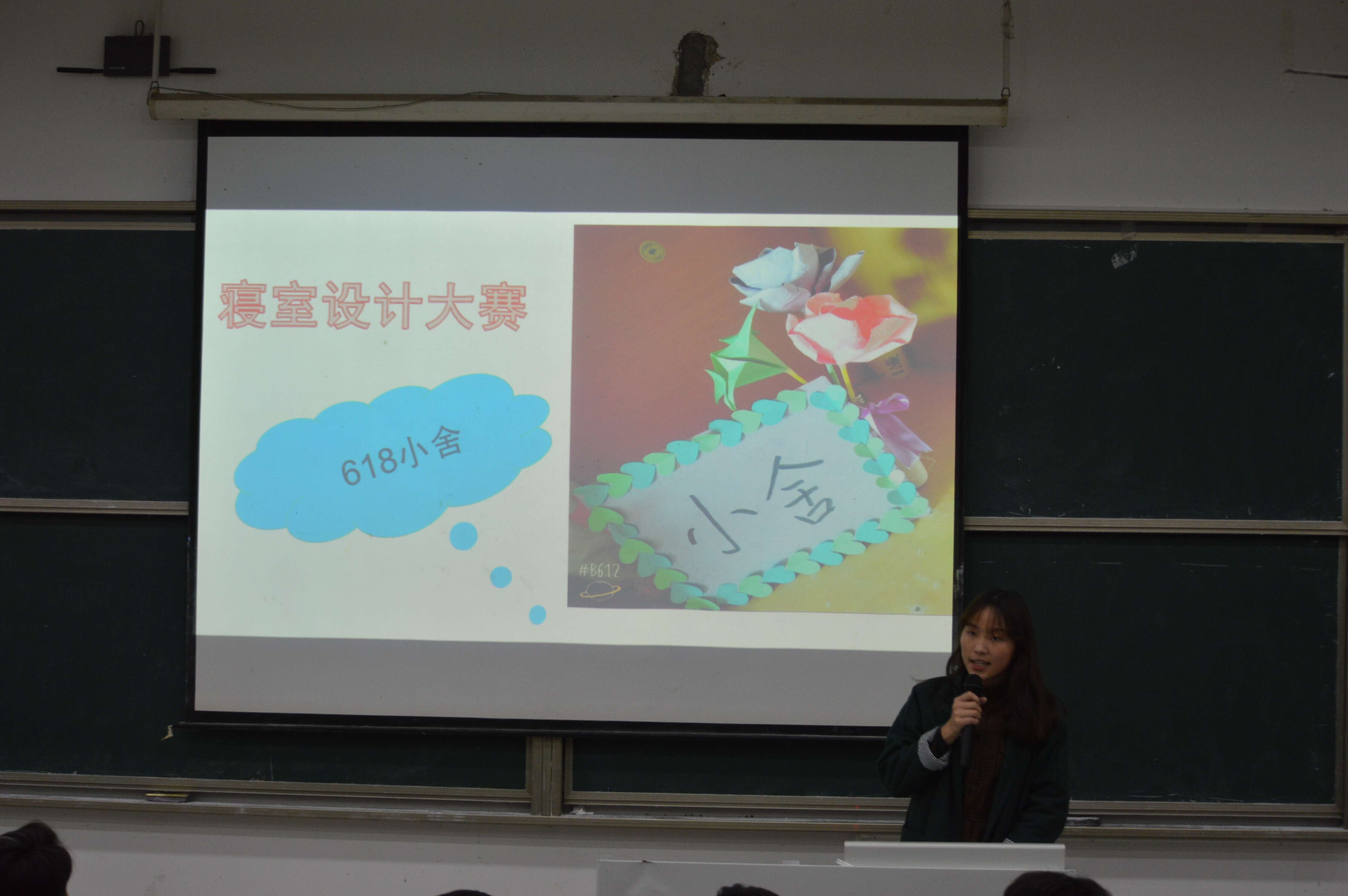 为了提高寝室文化品位,丰富大学生宿舍文化生活,展现大学生风采,资源开发系生活部于2017年12月3日晚上7:00在阶梯教室103举行寝室活动。