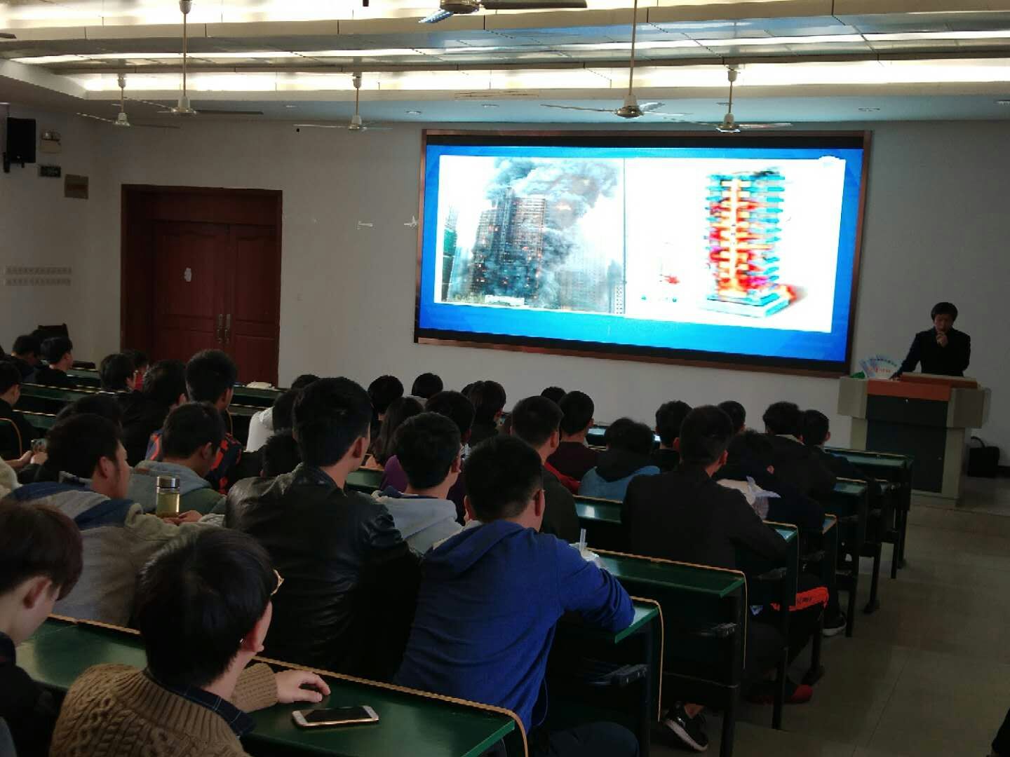 2018年11月9日,beat365资源开发系高层住宅建筑防火设计讲座在教学楼阶梯教室101如期举行。此次讲座有幸请到安徽山水有限有限公司、九三学社社员崔贤贵高级工程师为主讲人,我系2017级、2018级建筑工程技术专业、工程造价专业全体同学到场聆听。