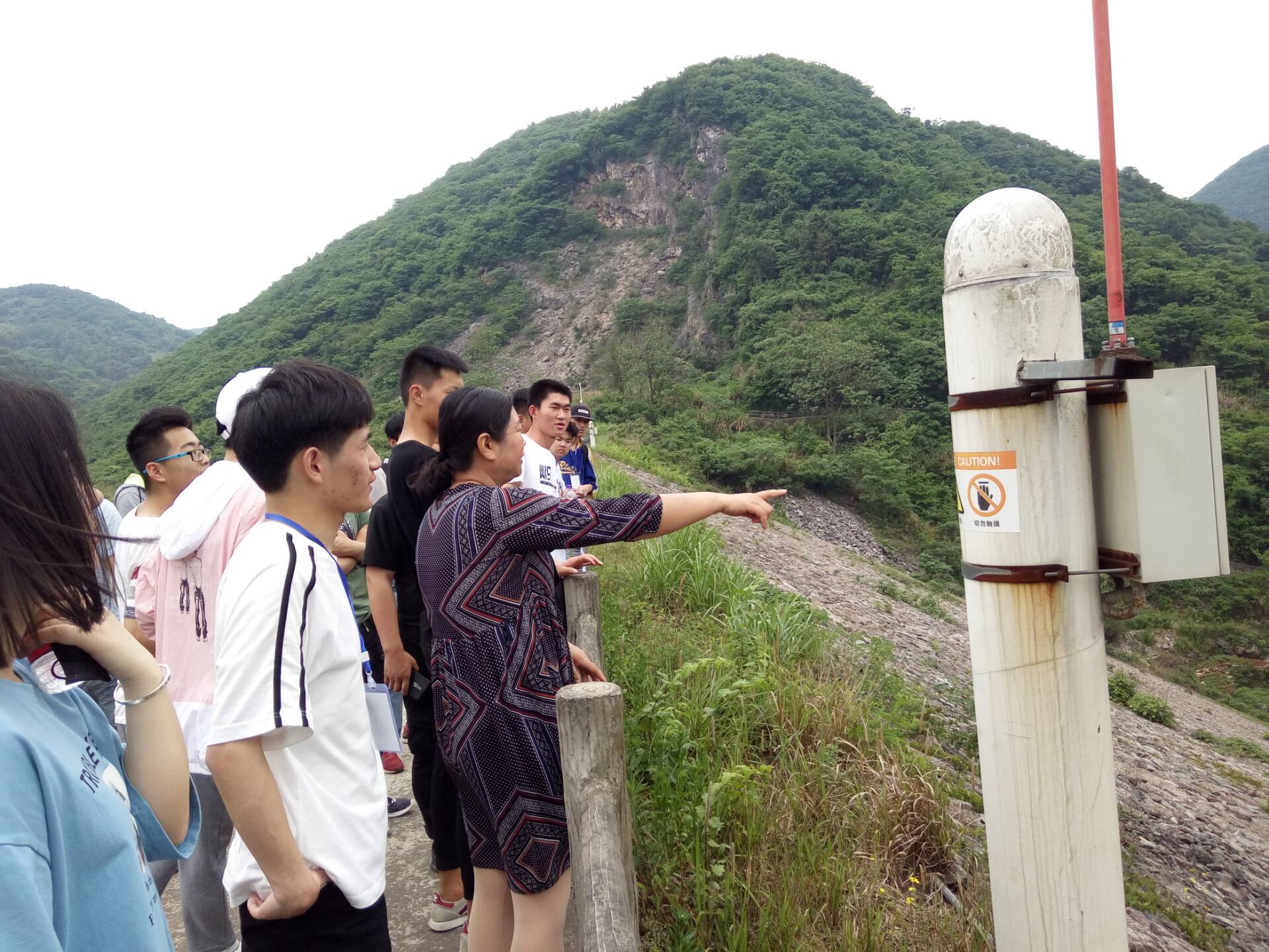 抵达目的地后,指导老师首先给同学们介绍了凤凰山金牛洞古采矿遗址及凤凰山矿业发展历史,随后,来到尾砂库,向同学们详细讲解了尾矿库的用途、设计依据、提升设备及尾矿坝的沉降监测装置。在滴水崖景点,同学们了解到了滴水崖形成的地质成因,感叹大自然的力量。登山过程中,同学们还沿途踏勘地质构造,了解地质知识。