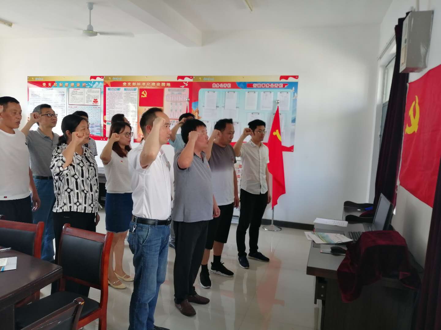 学习结束后,全体党员面向党旗重温了入党誓词。