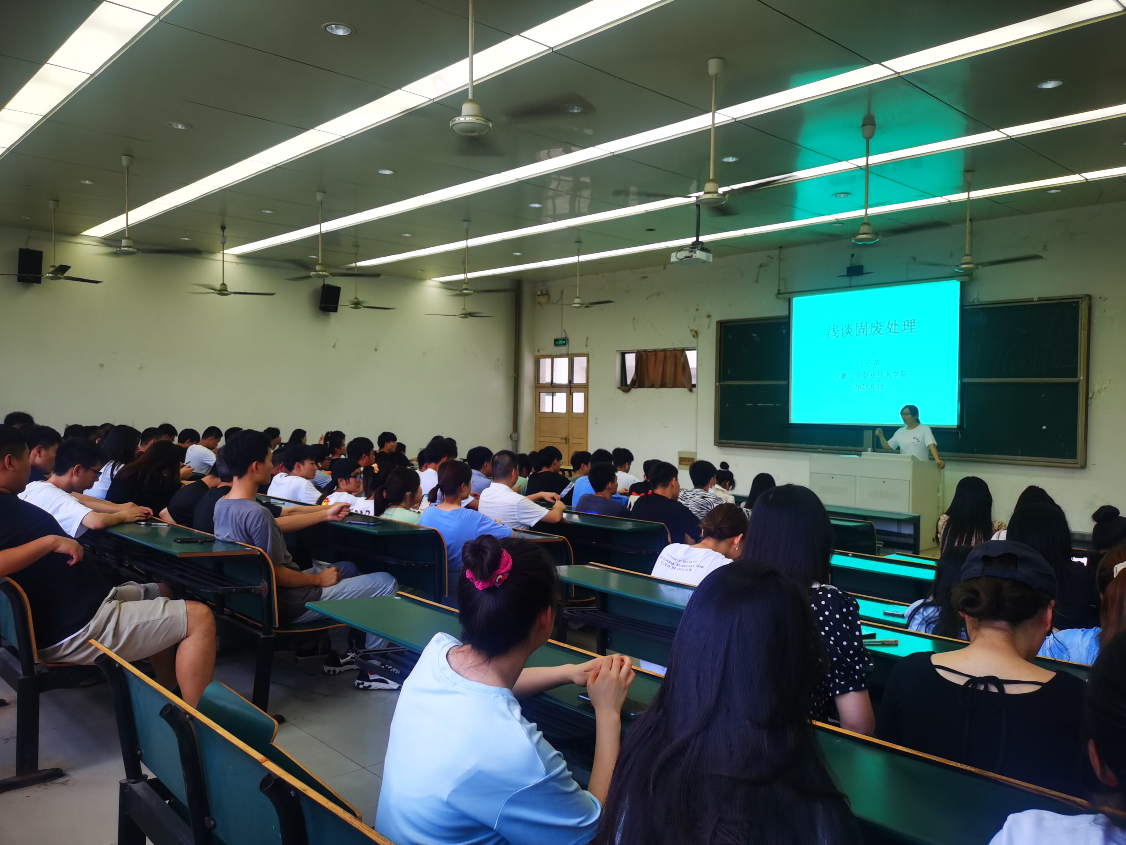 通过聆听本次讲座,同学们对固废处理有了初步的认识,还有学生表示这个讲座让他受益匪浅。结合本次讲座内容,后续还开展了固废处理知识竞赛活动,百余名学生忍受着梅雨季闷热的天气,挥汗如雨、认真完成了50道竞赛题目。