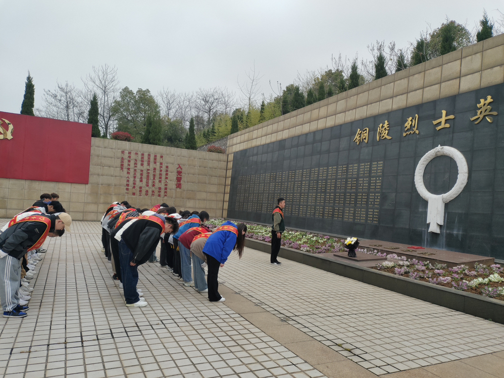 活动当日,全体人员集中前往铜陵市义安区笠帽山烈士陵园。面对庄重肃穆的烈士纪念塔,同学们怀着沉重的心情默哀三分钟,祭奠英雄先烈,缅怀他们的丰功伟绩和崇高精神,怀着深深的敬意深切悼念革命先烈。