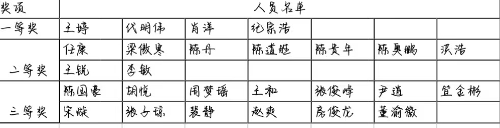 本次竞赛获奖人员如下: