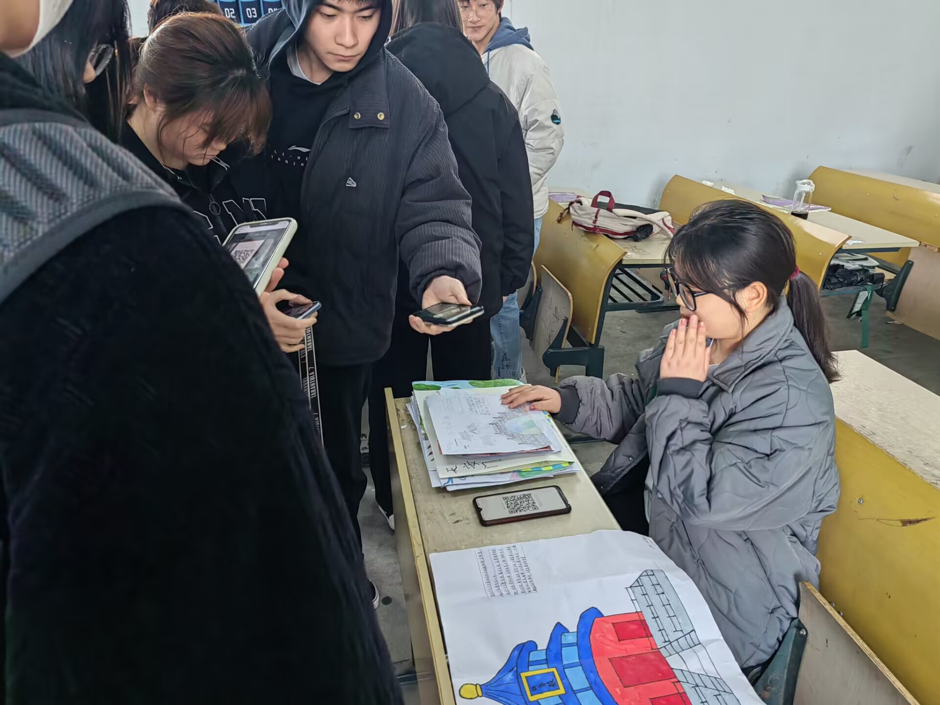 活动开始后,同学们按签到顺序列队提交作品。在提交作品时,同学们还按照比赛要求对自己的作品进行讲解并展示,作品提交完毕,同学们则有序离场,本次活动正式结束。