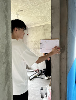 为进一步拓宽学生的实践能力培养,提升专业技能。资源开发系、海天公司组织建筑工程装饰技术专业2022级学生于2023年6月进行了为期三天的校外量房实训活动。在实训现场,同学们有的拿着卷尺和其他工具认真地量房,有的聚精会神地绘制房屋户型图,学习氛围浓郁。