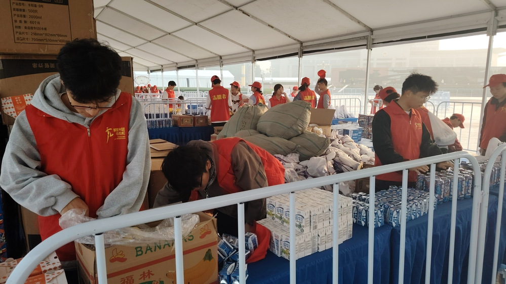 活动进行期间,志愿者在赛期为选手们提供赛前检录、赛道指引、物资补给、终点计时等服务。资源开发系志愿者于夜色中集结出发,在晨光熹微时到达服务点位,为活动的开展提供了保障!