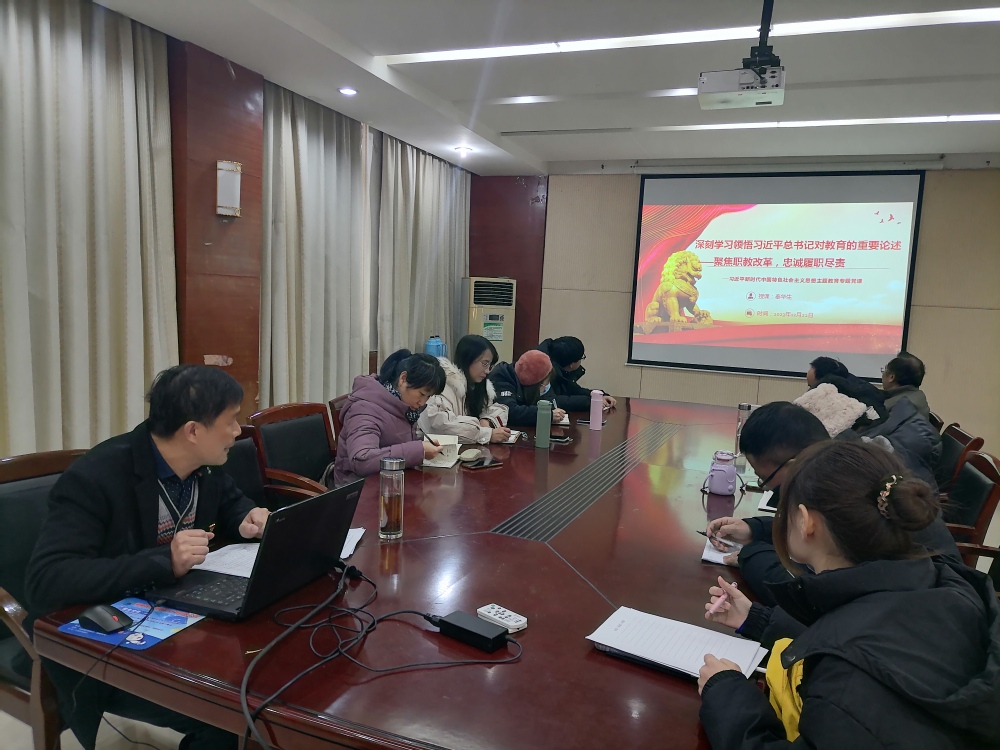 为深刻学习领悟习近平总书记对教育的重要论述,12月22日,学院党委委员、副院长秦华生以《聚焦职教改革,忠诚履职尽责》为题,给资源开发系党支部全体党员讲授学习贯彻习近平新时代中国特色社会主义思想主题教育专题党课。