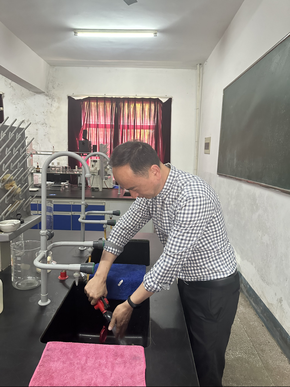 为贯彻落实教育部、省教育厅有关文件精神,确保实验室安全稳定运行,保障师生人身安全及校园和谐稳定,按照学院实验实训室安全管理工作的要求,资源开发系积极开展了24年春季期中实训室安全卫生检查工作。为进一步加强实验室安全管理,消除安全隐患,于2024年5月17日下午,资源开发系主任赵雪林及系部各实验室专(兼)职管理员对基础化学实训室、选矿实训中心、测绘实训室、建筑模型综合实训室等实验实训室的安全工作和卫生状况进行了全面深入检查,积极排查隐患。